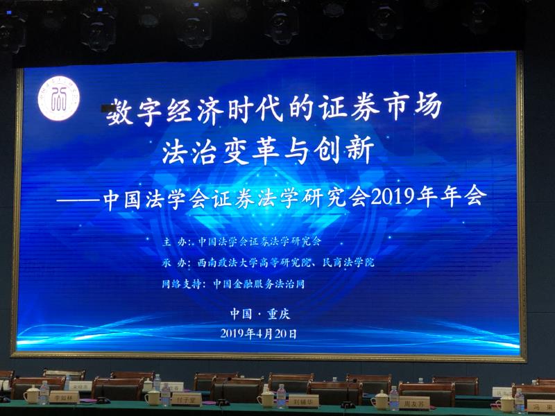 中国法学会证券法学研究会2019年年会于2019年4月19日-20日在重庆召开,本次会议的主题为“数字经济时代的证券市场法治变革与创新”。会议期冀通过深入研究、充分探讨,为我国数字经济时代证券市场发展提供良好法治环境,为证券法修改和资本市场法治体系完善贡献智慧。